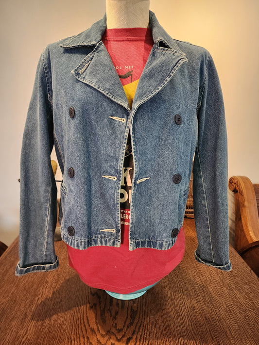 Hand-Printed Custom Vintage Denim Jacket, Ann Taylor Ladies' SM, "Cravings" by artist Jernie Scott