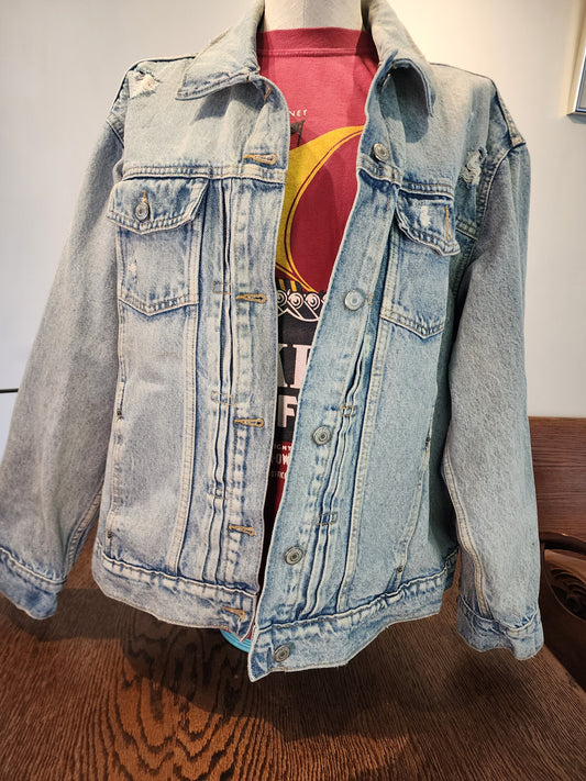 Hand-Printed Custom Vintage Denim Jacket, Old Navy Size Ladies' 2X, "Cravings" by Artist Jernie Scott