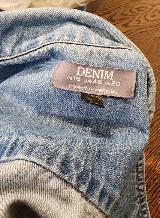 Hand-Printed Custom Repurposed Denim Jacket, Dorothy Perkins Ladies US16 Women's Suffrage, "Pantalette Suffragette"