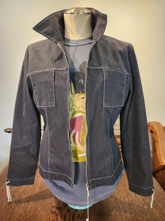 Hand-Printed Custom Denim Jacket, Sport Collection Ladies Size 6, "Cravings" by artist Jernie Scott
