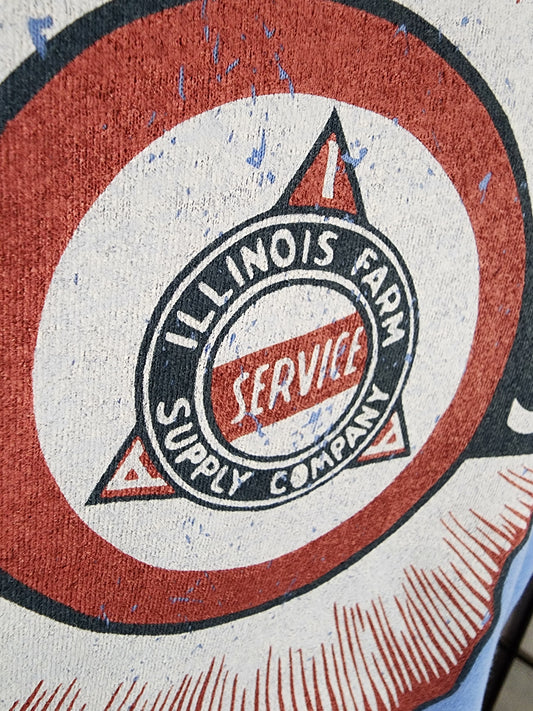 Vintage Seed Bag Design;"Illinois Farm Supply Co Blue Seal" Bella+Canvas tee, Colombia Blue Heather