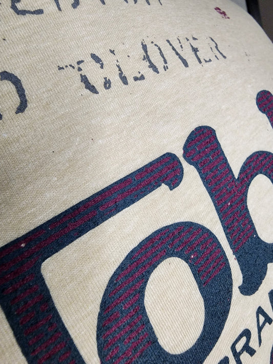 Vintage Seed Bag design; "Bush B-Line Feeds Dwight Illinois" Next-Level tee, Oatmeal