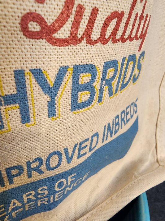 Pontiac, Illinois "Pike Hybrid Corn Co" vintage seed bag design, heavy canvas farmer's market tote bag
